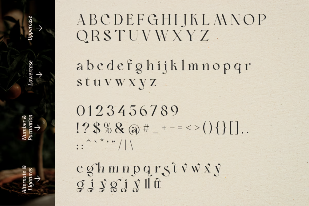 This font is perfect for editorial projects, logo design, clothing branding, product packaging, magazine headers, or simply as a stylish text overlay to any background image.