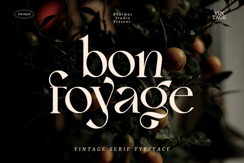 Bon Foyage Serif Font is a minimalist serif font created by Dharmas Studio with a modern taste, equipped with ligatures and alternate letters, but can be used for designs with a vintage vibe. Every letter has a subtle uniqueness to it, from the alternate letterforms of “g, j, y”, these glyphs are memorable!